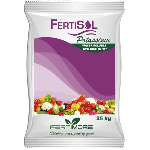 FERTISOL POTASSIUM formulas are produced from pure crystals, highly soluble in water and free from sodium, chlorides and carbonates, hence suitable for all irrigation systems. The very low salt content reduces sedimentation levels, which prevents nozzle clogging and tubes blockage. The high potash content is recommended for fruit set and maturing when higher potassium levels are required to improve yields’ quality. The nitrogen content in its different forms constitutes a readily mobile and long-lasting nutrition to maintain a vigorous plant with an activated metabolism for a healthy growth of all plant organs. The presence of SO3 prevents sulphur deficiencies and facilitates an efficient uptake and assimilation of nutrients, for the role it plays in the demobilisation of the mineral elements in the soil. The EDTA chelated micro-nutrients add to the formulas a complete nutritional provision for growth enhancement under high soil pH conditions and for the stimulation of biochemical interactions and activation between different nutrients.