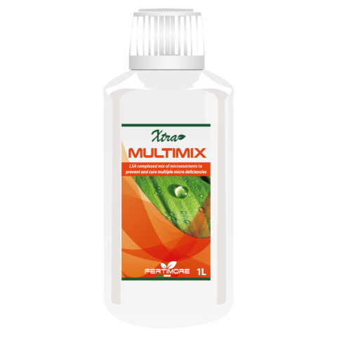 XTRA MULTIMIX is a fast-acting, highly soluble, homogeneously spread and quickly absorbed liquid formula with high content of complexed mix of boron (B), copper (Cu), iron (Fe), manganese (Mn), Molybdenum (Mo) and zinc (Zn):